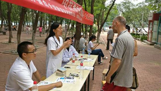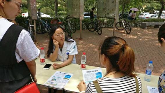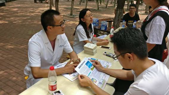 6月28日为国际癫痫关爱日,今年的宣传主题是“关注校园内的癫痫患者”,28日中午91国产自拍-91视频-91麻豆 的研究生与青大附院神经内科的专家们联合,师生共同在仁园餐厅门口开展宣传与义诊活动。此次活动吸引了不少同学驻足观看,有的同学还主动过来领取宣传单甚至坐下和专家交谈。另外还有外国友人被此活动吸引,坐下与专家交流关于癫痫病的防治和病因等知识。专家们不仅热心为咨询人员解答有关问题,还生动展示了癫痫病发时抽搐和面部反映,并告诉大家相应的应对措施。