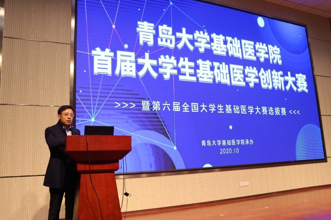 王建勋院长对本次创新大赛的举办表示了衷心的祝贺,并借此机会对多年来大力支持91国产自拍大学生创新创业工作的领导和老师表示感谢。王建勋院长在介绍91国产自拍历年创新比赛取得成绩后表示,基础医学的基本知识和技能是医学生走向实践的基础和根本,广大同学要积极参加各类学科竞赛和创新创业比赛,通过比赛提升科研能力和人才培养质量,为未来的科学研究打下坚实的基础。