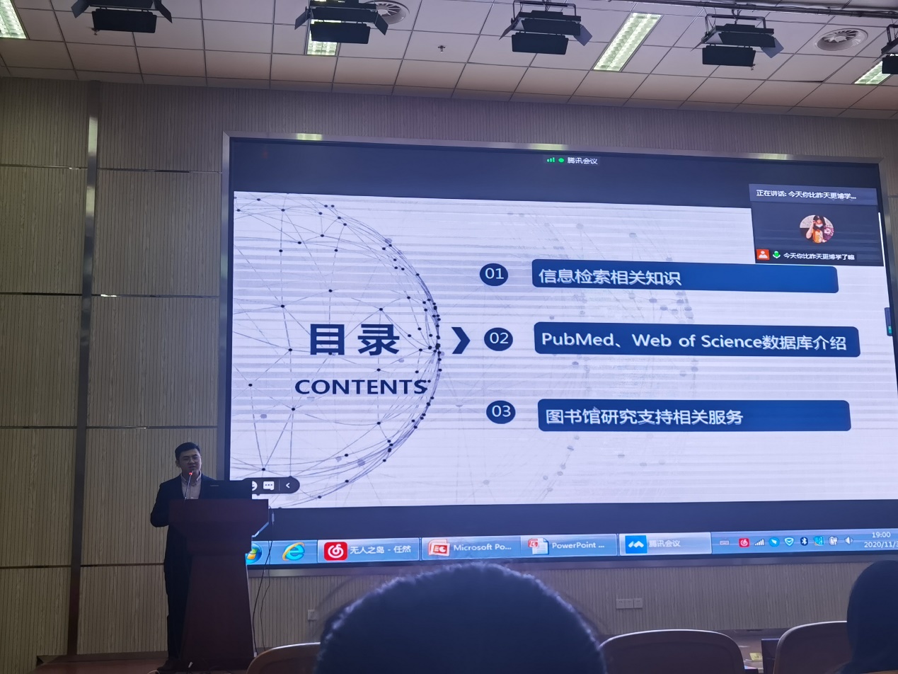 研究生会(学生会)承办的“提升信息素养,助力科研创新”文献检索专题讲座在医学部综合大楼104学术报告厅举办。图书馆副研究馆员刘宁老师从信息检索相关知识、PubMed、Web of Science数据库介绍及图书馆研究支持相关服务等三个方面做了3个多小时的专题讲座。