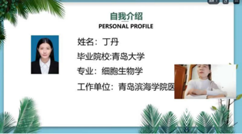 细胞生物学专业、目前在滨海91国产自拍做教师的丁丹同学,导师王建勋教授,在读研期间曾发表两篇SCI论文。丁丹同学从自己的求职经历、就业选择、求职准备、面试经验等方面,为大家详细介绍了如何制作简历、面试中注意的细节以及自己当前的工作状况和心得感悟。她说“要从个人兴趣、个人资源、个人目标出发, 充分了解自己,知道自己想干什么,能干什么。摆正心态,不能碍于面子,也不能着急,要以恰当的方式维护个人权益”。