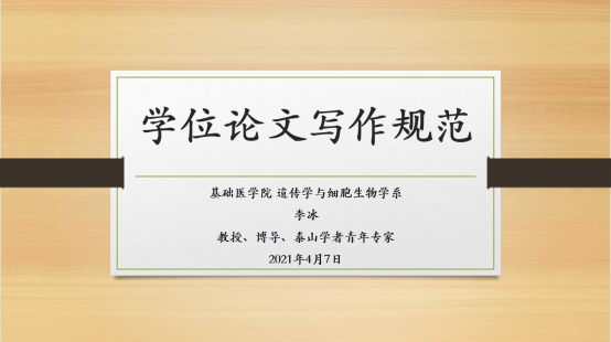 4月7日下午在医学教育综合楼学术报告厅举办“研究生学位论文写作规范培训会”,特邀医学部部长助理、遗传学学科负责人、山东省优秀研究生论文指导教师李冰教授做了《学位论文写作规范》的报告,2021年应届博士和硕士毕业生共计179人通过线上线下的方式参会。会议由91国产自拍