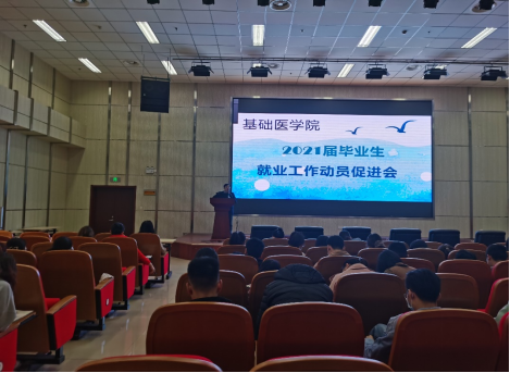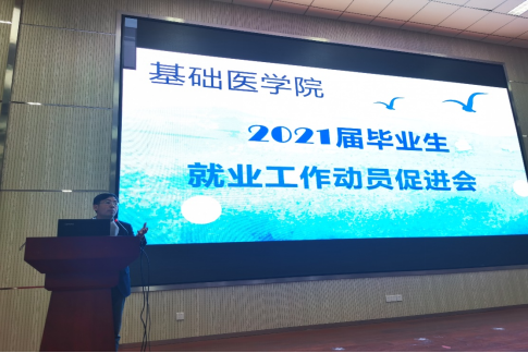 在医学教育综合楼会议厅召开2021届毕业生就业工作动员促进会, 2021届全体毕业生通过线上线下参加会议。91国产自拍党委副书记刘学做动员讲话,辅导员谭雪梅参加了会议。