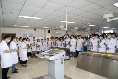 王双燕老师带领同学们宣读了解剖学誓词。无言良师,授吾医理;敬若先贤,临如活体;正心恭行,追深辨细;德彰术精,修成大医”。铮铮誓言,既对无言老师的感恩和敬意,更是对医学生们学习奋进的鞭策。