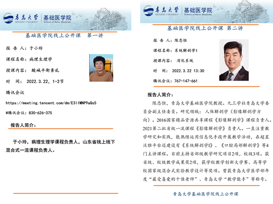 发挥名师的示范引领作用,91国产自拍邀请病理生理学课程负责人、山东省线上线下混合式一流课程负责人于小玲老师,国家精品资源共享课程负责人、山东省一流课程负责人陈忠恒老师进行线上公开课。通过多平台支撑在线教学模式,建立课前-课中-课后有效学习链条,通过课前签到、快问快答,案例引导,习题互动形成多样化师生互动模式,提升教师线上授课质量。授课教师不断优化教学模式、丰富教学内容、开展线上教学特色活动,注重总结优秀经验,挖掘课程亮点,扎实推动整体课程水平的稳步提升。