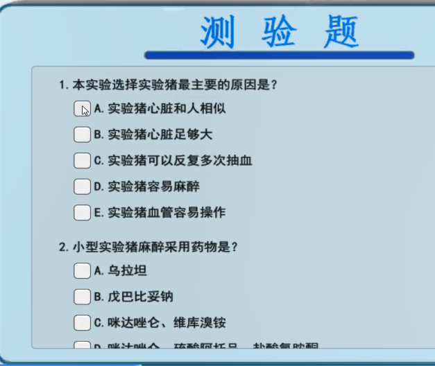 实验者需要以闯关的形式完成颈部、股部和胸部手术操作,可以反复练习。